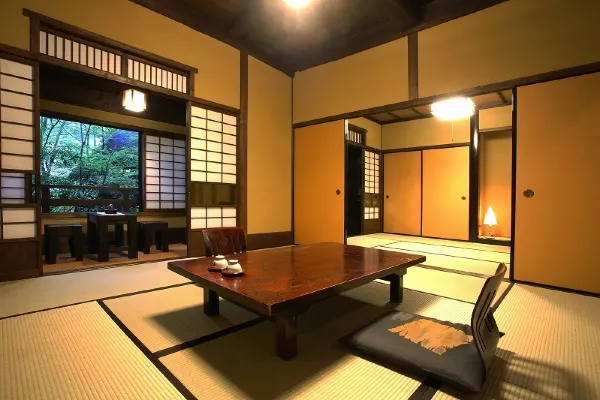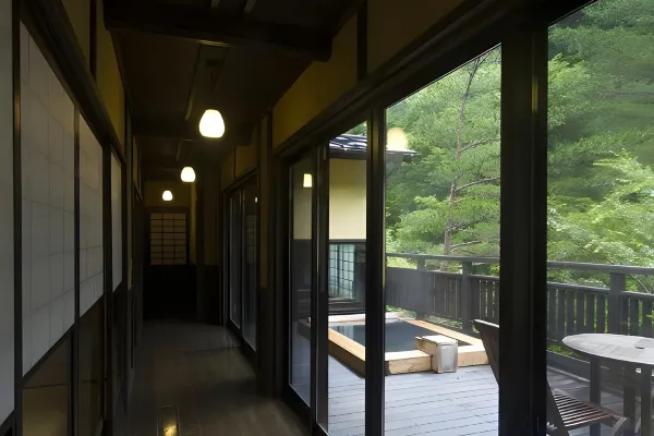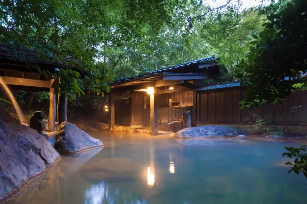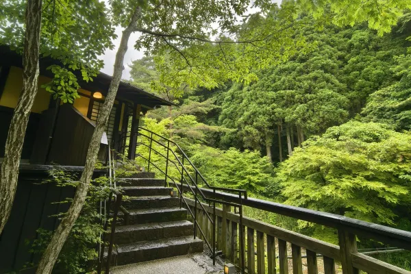 Located just a 5-minute drive from the heart of Kurokawa Onsen, Ryokan Sankō sits amidst forests where the murmurs of the Chikugo River’s headwaters can be heard, surrounded by nothing but nature. Here, quiet and leisurely time flows. We offer 16 Japanese-style rooms, including rooms with private indoor baths and detached cottages. We take pride in our two private natural hot spring sources: a simple sulfur spring and a sodium chloride-bicarbonate spring, both flowing freely into our baths. Within our 3000-tsubo grounds, we offer seven distinct baths, including barrel baths and private rental baths. Sankō’s greatest charm is its unspoiled, abundant nature— enjoy a stay in harmony with nature.