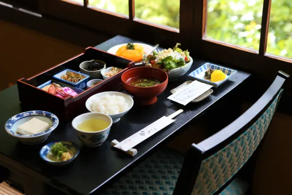 Our cuisine features Kyoto-style dishes generously incorporating local ingredients, allowing you to savor the seasonal delicacies. Crossing a dedicated suspension bridge leads to our riverside dining platform, built over the clear waters of the Kiyotaki River. Here, you can enjoy riverside cuisine enveloped by the soothing sound of the stream.
