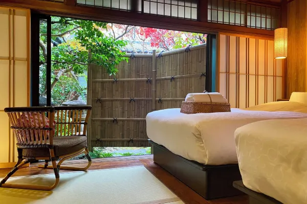 A townscape steeped in history and tranquility, lined with long-established wholesalers… Experience the atmosphere of an ancient capital in our traditional machiya-style buildings. Relax and unwind in serene spaces while gazing at the courtyard garden. This is an inn you’ll want to return to time and again. A small, hidden retreat with just 7 rooms, cherishing the charm of a Kyoto machiya. Every room features a cypress wood bath, offering moments of deep relaxation.