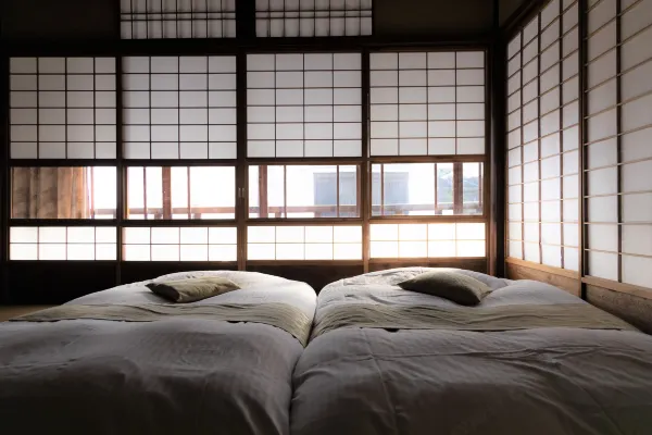 We offer five charming rooms: rooms featuring old-fashioned wavy glass and decorative woodwork, a room modeled after Katsura Imperial Villa, and rooms renovated from the storehouse and tea room. Two gardens grace the grounds, visible from every guest room.