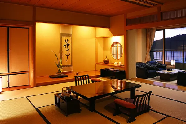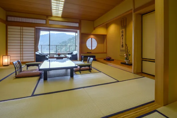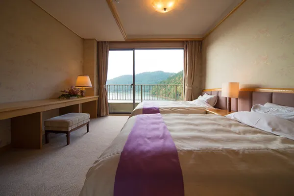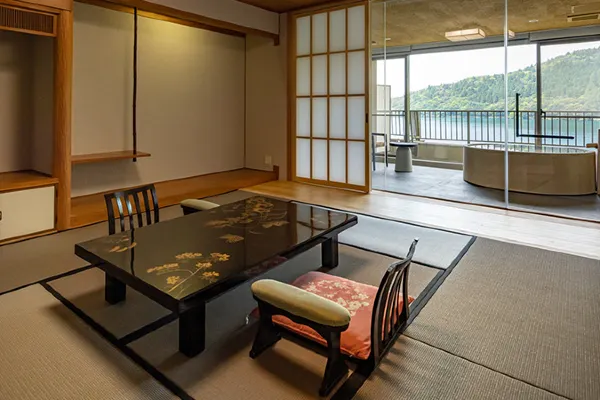 Room types range from traditional Japanese-style to Japanese-Western-style, special rooms, and VIP suites—all with elegant furnishings and views of the surrounding nature from the shores of Oshidori Pond.