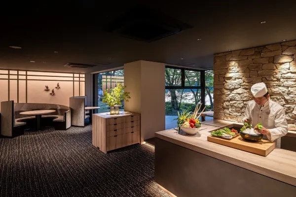 Kaiseki-style dishes generously featuring fresh seafood from the Ariake Sea and seasonal vegetables harvested in Unzen and Shimabara, prepared with both boldness and delicacy and served in Arita-yaki porcelain. The menu blends traditional Japanese flavors with innovative Western touches, enjoyed by guests of all ages. Children’s meals are also available.