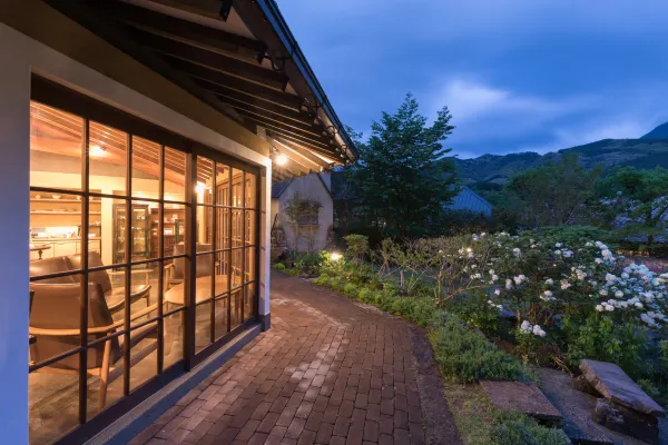 We prepare Japanese kaiseki cuisine using only the finest local ingredients, generously selected by our head chef: fresh Seki horse mackerel, Seki mackerel, Oita Wagyu beef, and more. We offer a limited service of just 10 groups per day, so you can wholeheartedly enjoy this special feast. Savor your meal at your leisure in a private dining room, offering a different ambiance from your guest room. All water at our inn comes from the spring waters of Mt. Yufu—the water in your kettle, your coffee, and even the water used in cooking. It is a special soft water with a gentle taste; please take a moment to savor it. Furthermore, between your hot spring baths and rest periods, we host an aperitif in the lounge as a prelude to dinner.