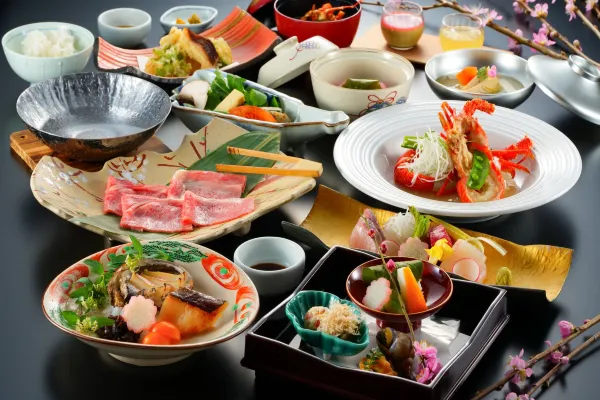 Our dishes feature ingredients meticulously selected down to the finest detail, including vegetables and rice cultivated using organic farming methods and sourced directly from contracted farms. Watch our chef perform a spectacular teppanyaki show right before your eyes, featuring luxurious Japanese Black beef. Indulge in a Japanese kaiseki meal rich with Oita’s unique bounty from the sea and mountains, showcasing seasonal ingredients. Choose the dining experience that best suits your occasion.