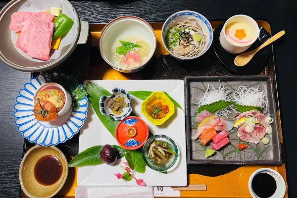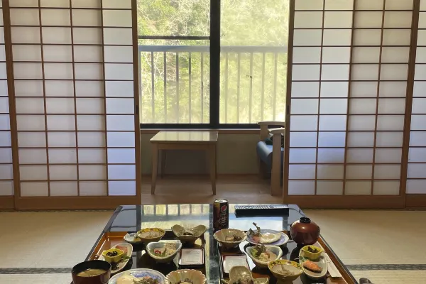 Nestled in the mountains and valleys, we incorporate abundant local ingredients. Savor dishes unique to this blessed region, featuring “local free-range chicken,” “Bungo beef,” “fresh vegetables from local farms,” and “river fish like sweetfish.” Morning and evening meals are served in your room.