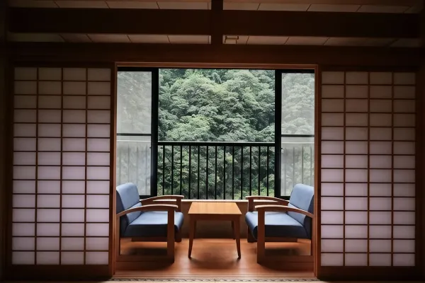In spring, feel the vibrant vitality of young leaves bursting forth, listening to birdsong filtering through the trees. In summer, stretch your feet into the river’s flow on the riverbank where the chorus of cicadas rivals the babbling brook. In autumn, admire the deepening hues of the changing leaves while observing small animals busily preparing for winter. In winter, gaze leisurely at the leaden clouds from the open-air bath tub, already thinking of the coming spring. This is an inn rich in nature, offering unique pleasures for each season. The inn overlooks the clear streams of the Kusu River. You can reserve private time in the open-air bath for free.