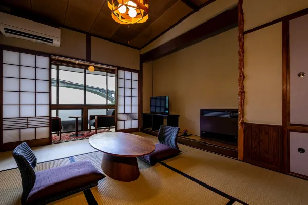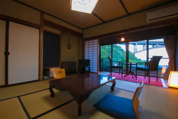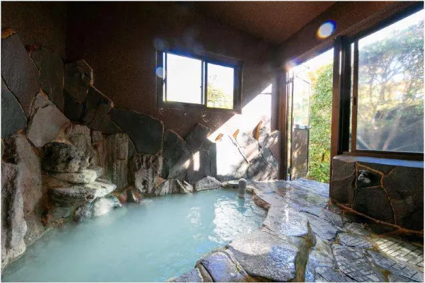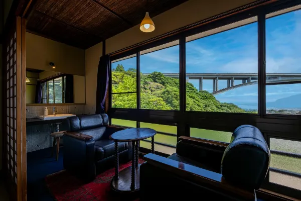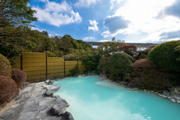 Our inn was founded in 1875 and is one of the oldest ryokan in Myoban Onsen, a tranquil mountain hot spring area within Beppu City. In 2025, we celebrated our 150th anniversary. All guest rooms face the sea, with views over Beppu’s cityscape framed by Myoban Bridge and Beppu Bay. Our hot spring is a very rare acidic sulfur spring. With its distinctive sulfur scent, the milky blue water—often compared to celadon—heals both body and mind. Naturally, it is 100% free-flowing from the source. Myoban Onsen’s water is a hydrogen sulfide spring with strong acidity (pH 3 or below), long known for its efficacy in skin diseases, neuralgia, diabetes, and more.