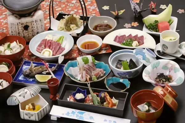 A variety of freshwater fish from the clear waters of the Kusu River, prepared seasonally to highlight the natural flavors of Amagase.