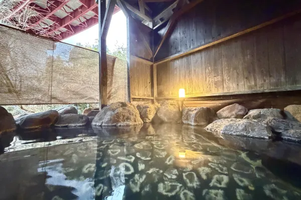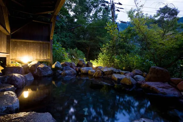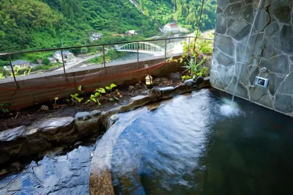 The facility owns five natural springs on the premises. The sodium chloride-bicarbonate water, said to be effective for neuralgia and diabetes, fills the baths with constantly flowing fresh hot spring water.